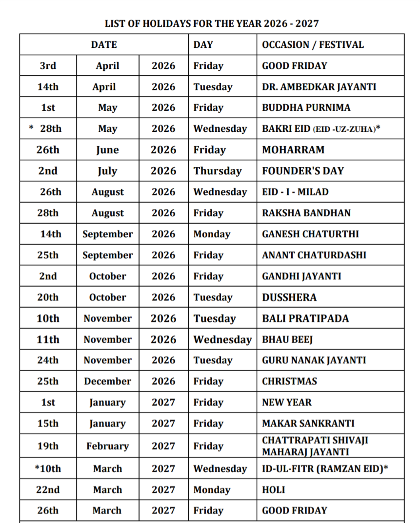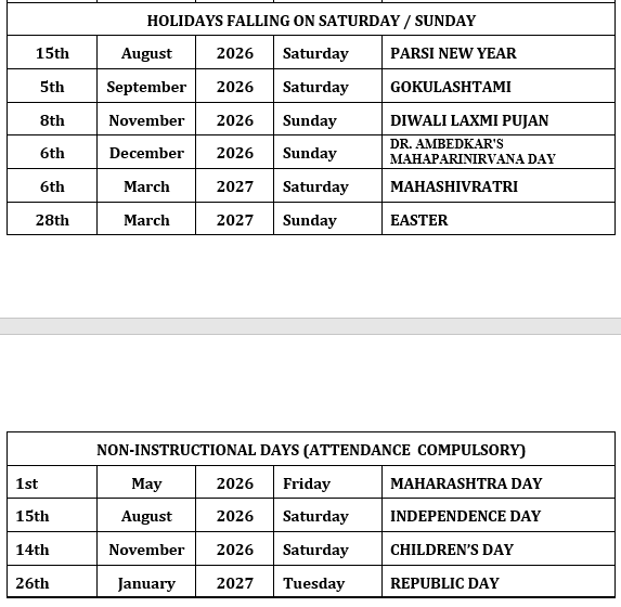 Pre-Primary Section: 8:30 a.m. to 12:30 p.m.